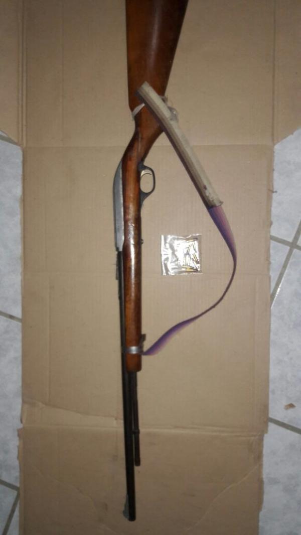 Al interior de la unidad, fue localizada un arma de fuego tipo rifle, abastecida con 12 cartuchos útiles.