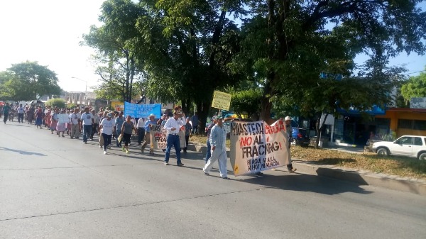 Bajo las insignias de "HUASTECA UNIDA NO AL FRACKING, ni aquí, ni allá, ni hoy ni nunca" los manifestantes procedieron a recorrer las principales avenidas de la ciudad.