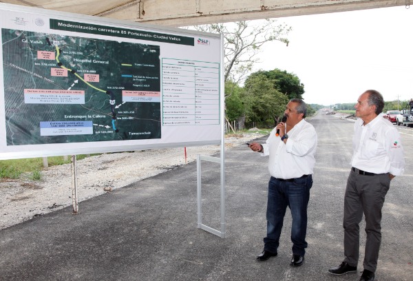 • El Gobernador del Estado Juan Manuel Carreras López, supervisó las obras de la modernización y ampliación de la carretera Valles-Tamazunchale, donde destacó que esta obra, esperada por décadas, dará mayor impulso al desarrollo de la Zona Huasteca, tanto en materia agropecuaria como turística, lo que generará nuevos empleos.