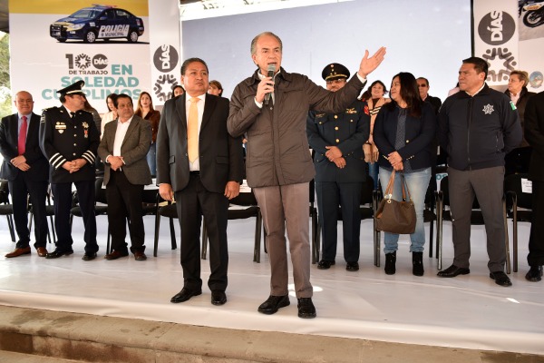 Reconoció el equipamiento que realiza el municipio de Soledad de Graciano Sánchez, que va a reforzar la seguridad en las colonias que, bajo la estrategia de cuadrantes, pondrán en operación las unidades recientemente adquiridas para la atención oportuna a la ciudadanía.