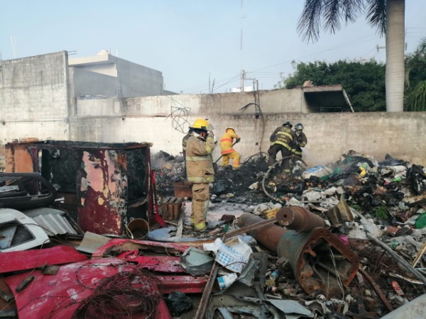 Se quemó un montón de cubetas de plástico, así como unos tambos metálicos y carbón.