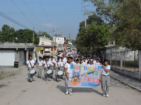 Este lunes la Secretaría de Salud dio arranque de manera oficial a la Semana Nacional de Vacunación Antirrábica Canina y Felina, bajo el lema "No bajes la guardia, vacuna a tu perro y gato contra la rabia, por una salud para todos eliminemos juntos la rabia", en coordinación con la Escuela Secundaria número 5 "Rafael Curiel Gallegos", llevando a cabo un desfile alusivo por las calles aledañas de la Colonia La Pimienta en Ciudad Valles.
