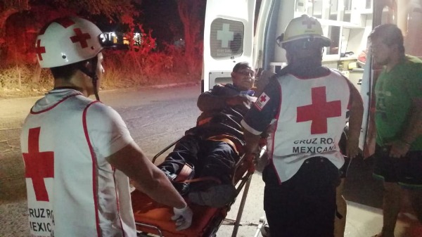 Debido a que se lesionó una pierna, fue auxiliado por personal de la Cruz Roja.