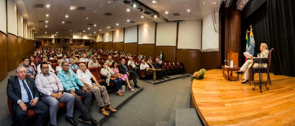 Al término de la conferencia el rector Manuel Villar Rubio entregó a la ponente un reconocimiento por la impartición de la charla.
