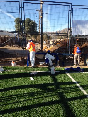 Es por ello que el día de hoy las canchas del bordo sur recibieron un mantenimiento, por parte de la Comisión Municipal del Deporte (Comude) en conjunto con la Dirección de Parques y Jardines, como parte de esas medidas con las que busca fomentad la productividad del municipio.