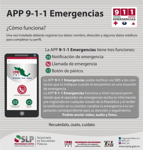 La Secretaría de Seguridad Pública del Estado (SSPE) explicó el funcionamiento de la aplicación móvil 9-1-1 Emergencias, conectada al sistema nacional homónimo, misma que proporciona a los usuarios un botón de pánico, notificaciones y llamadas directas las dependencias de auxilio, para lograr mayor efectividad en la atención ciudadana.