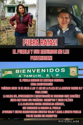 A través de redes sociales habitantes del municipio de Tamuín convocan a realizar una manifestación en contra de la Presidenta Municipal Grecia Esmeralda Sánchez González, motivada por la inconformidad que tiene la gente por la contratación de personal foráneo y por la ausencia de obras que ha hecho la Presidenta y sus funcionarios.