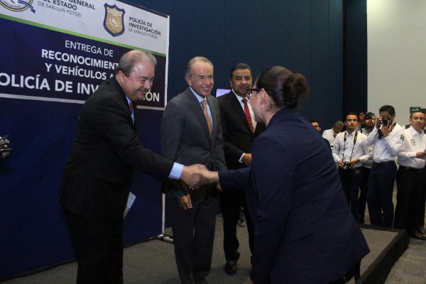 En el evento fueron reconocidos 36 agentes investigadores por los resultados obtenidos en los últimos hechos de alto impacto que han lastimado a la sociedad potosina como los son homicidio, feminicidios, robo con violencia y secuestros; casos en los que los presuntos responsables ya se encuentran frente a la justicia.