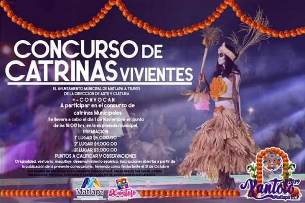 El próximo 30 de octubre a las 8 de la noche en la explanada municipal del municipio de Matlapa se llevará a cabo un concurso de altares donde estarán premiando con efectivo a los 3 mejores, para ello las inscripciones están abiertas y los interesados pueden acudir al departamento de Arte y Cultura dentro de la Presidencia Municipal.