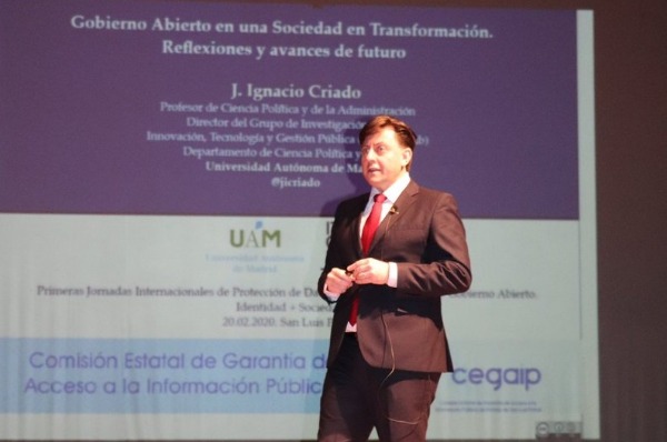 El Dr. Ignacio Criado Grande, procedente de la Universidad Autónoma de Madrid, quien tuvo a su cargo la conferencia con ese tema de Gobierno Abierto, destacó que esto no es solamente una cuestión de los gobiernos ni de las administraciones públicas, sino que es una cuestión social, de involucrar a la ciudadanía, a los medios de comunicación que también deben de tener un rol importante para apoyar este tema de Gobierno Abierto.