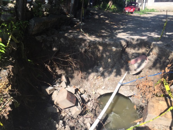 "Ya buscamos la manera de tapar el hoyo, instalamos un hule para aminorar los malos olores, pero el aire y la lluvia se la llevaron, además de que esto puede significar que algún conductor no sepa del hoyo y caiga nuevamente, hay muchos riesgos, por donde le vean, por eso pedimos a través de este medio nos hagan caso, que las autoridades vengan, verifiquen y rehabilitan este lugar", puntualizó.