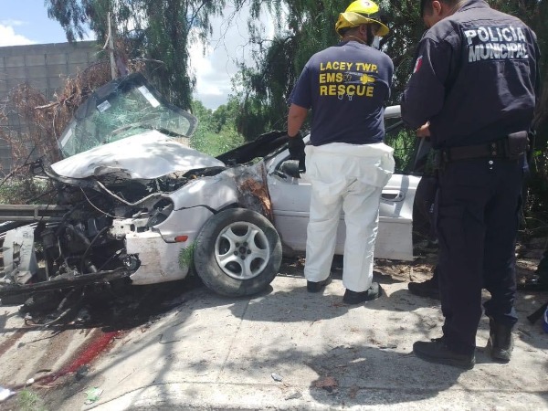 El automóvil blanco quedó impactado en una especia de barda que se encontraba a un costado de un terreno baldío, justo debajo de un árbol.