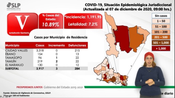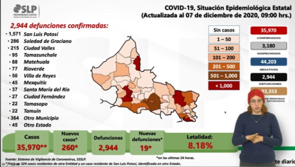 260 nuevos contagios y 19 decesos por Covid-19 en SLP hoy; este día Cd. Valles en ceros