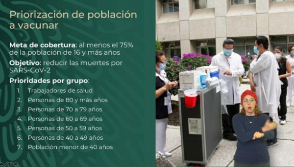 De acuerdo a la información emitida, la priorización de vacunación a la población, consistirá, como se informó, con una meta de cobertura nacional del 75 por ciento de la ciudadanía de 16 y más años; cuyo objetivo se la vacuna, es reducir el número de muertes por SARS-CoV-2.