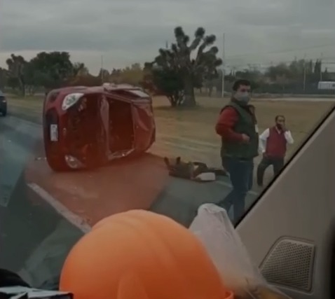 La mañana de este martes, se registró una aparatosa volcadura sobre la carretera 57 frente al Parque Tres Naciones.