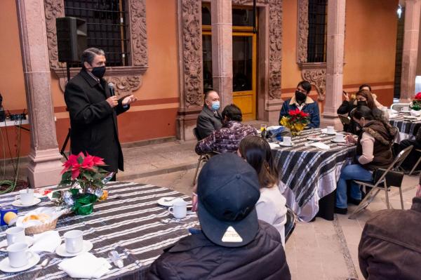 El Centro Cultural Universitario "Caja Real", fue el marco idóneo para la celebración del festejo navideño que la Universidad Autónoma de San Luis Potosí (UASLP) ofreció a los representantes de los medios de comunicación locales con todas las medidas sanitarias.
