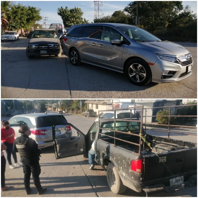 Un hombre que conducía una camioneta Chevrolet S10 color negro, de modelo atrasado, no tuvo precaución al transitar por la avenida Ejército Mexicano y en el cruce con la calle Pedro J. Méndez, chocó contra una camioneta marca Honda color gris, modelo 2020.
