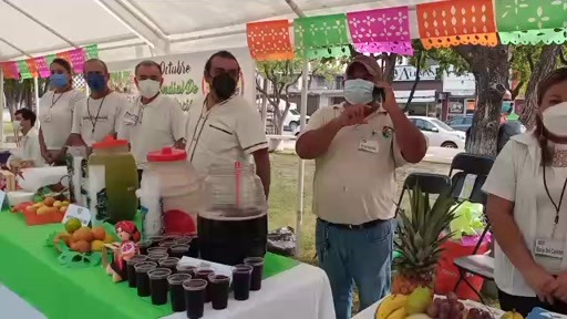 En la exposición hubo aguas de frutas tropicales, como de limón, Jamaica, horchata, así como tamales de sarabanda y de acelgas, palmito con carne de puerco, jacubes en rojo, nopales y elote con otros ingredientes.