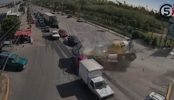 La SSPE informa que un chofer de un camión revolvedora que descendía por la pendiente de avenida Chapultepec de sur a norte perdió el control a causa de una falla en el sistema de frenos y se impactó contra una camioneta roja estaquitas de frente y con otros 5 vehículos que estaban parados frente a la luz roja del semáforo, afectando además a transeúntes y clientes que se encontraban en ese momento en un puesto de tacos.
