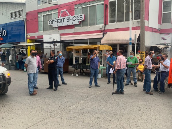 La calle Abasolo esquina con independencia fue el lugar de caos vial por la mañana, ya que un grupo de locatarios cortaron el paso vehicular y dificultaron el paso de algunos comerciantes que tuvieron que llevar a pie con su mercancía.