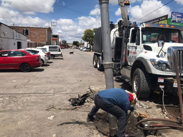 De inmediato los responsables de "Fuga Cero" enviaron un camión de alta presión, para realizar el desazolve de tres pozos de visita, bajar los niveles de agua y sondear las condiciones del drenaje en 230 metros lineales.