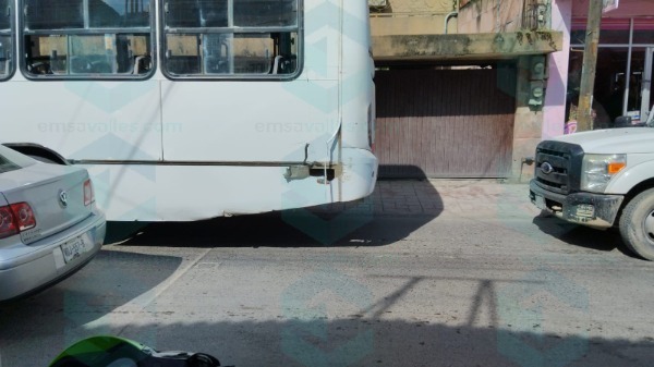 En la zona centro de Ciudad Valles, sobre la Calle Abasolo entre las calles Obregón y Galeana, se registró un choque de consideración menor entre un autobús identificado con el número 37 y una camioneta de carga Ford F350.