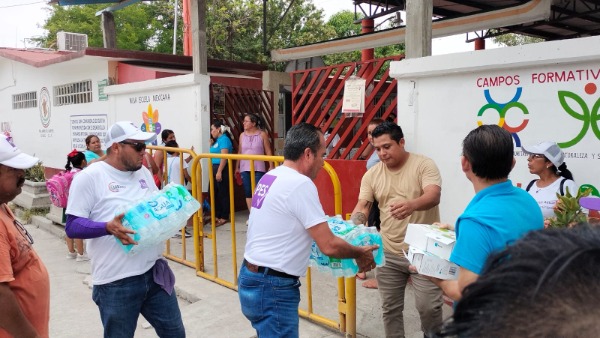 La semana pasada, se visitó el Instituto Mexicano del Seguro Social (IMSS) durante el día de mayor intensidad de la contingencia. Hoy, se ha brindado apoyo a la Primaria "Himno Nacional", donde se distribuyeron agua embotellada y suero oral a los padres de familia.
