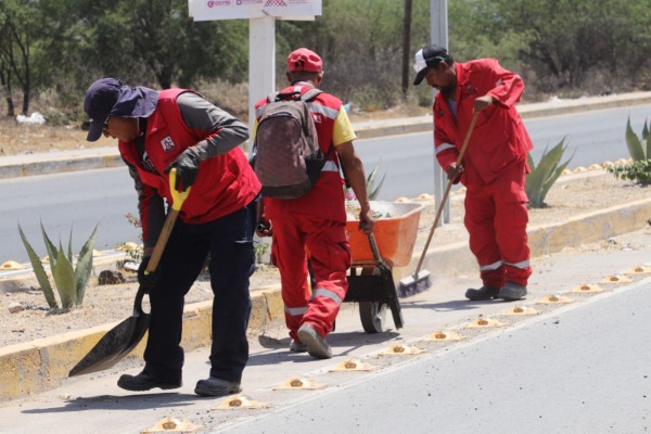El camellón central y laterales recibieron mantenimiento con el retiro de basura y maleza, faldeo de árboles y de las plantas de ornato. También se colocó pintura nueva en todo lo largo de las guarniciones desde la plaza principal hasta el entronque con la carretera 57, y se realizaron trabajos de bacheo.