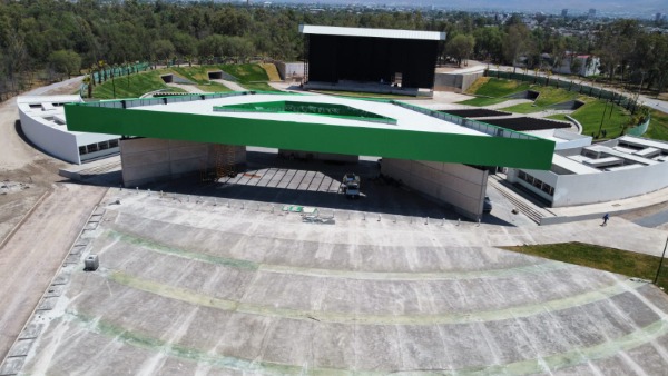 El nuevo Teatro de la Ciudad se ubica en el parque Tangamanga II, con vista panorámica, camerinos, baños y accesos inclusivos, una capacidad para más de 10 mil personas y contará con un moderno escenario equipado, espejo de agua, espacios incluyentes con rampas de acceso universal, entre otras.