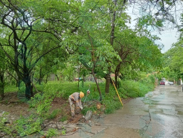 Esta mañana, personal de la Comisión Federal de Electricidad (CFE) acudió al callejón Toltecas, ubicado en la zona centro de Ciudad Valles, para realizar labores de reparación en un poste eléctrico afectado por los escurrimientos y ablandamientos del terreno.