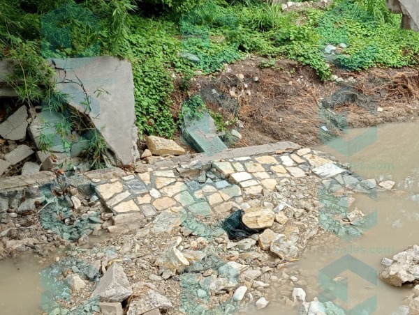 Hasta el momento, ninguna autoridad ha acudido al lugar para retirar los escombros. Además, también otra barda del lado opuesto del arroyo, recientemente construida, también ha colapsado completamente bajo la fuerza del agua.