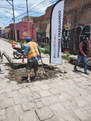 Para mejorar las condiciones de las vialidades en emblemático barrio de San Sebastián, Interapas inició la reparación de un colapso en el alcantarillado sanitario que ocasionaba problemas a automovilistas y peatones en la calle Negrete.