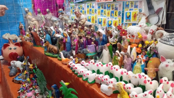 "El nacimiento es José, María y el Niño Dios, ese es el significado. Hay figuras de todos los tamaños, desde un metro hasta muy pequeñas, con precios desde 20 pesos. Antes vendía mucho, pero ahora las personas compran menos, quizá porque no hay dinero ni trabajo, y prefieren artículos indispensables", comentó Rodríguez.