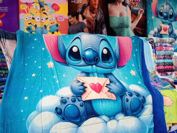 Una de las estrellas de su puesto es el famoso cobertor de tigre, que sigue siendo muy buscado. Aunque ya no se fabrica el original San Marcos en Aguascalientes, dijo que los nuevos modelos siguen teniendo ese toque cálido que muchos recuerdan.