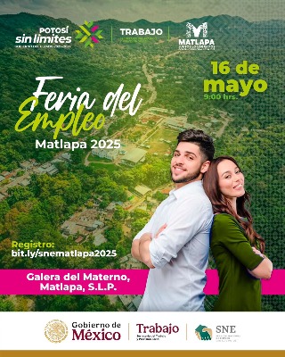 La Secretaría del Trabajo y Previsión Social (STPS) realizará la Feria Regional del Empleo Huasteca Sur el viernes 16 de mayo en Matlapa para promover sin límites el empleo y que las y los potosinos puedan acceder a empleos mejor pagados, tal como lo ha instruido el Gobernador de San Luis Potosí Ricardo Gallardo Cardona.