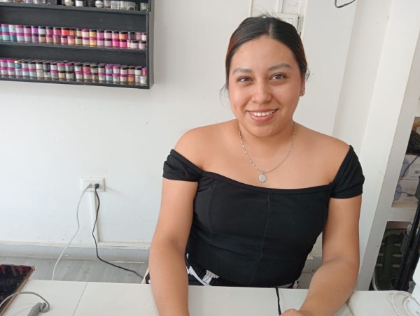 Celeste Bautista recordó que empezó por casualidad, cuando una amiga la invitó a aprender. Aunque al principio le daba miedo aplicar uñas, poco a poco fue ganando confianza. Su primera aplicación fue con brillo rosita en las puntas, y desde entonces, no ha dejado de practicar.