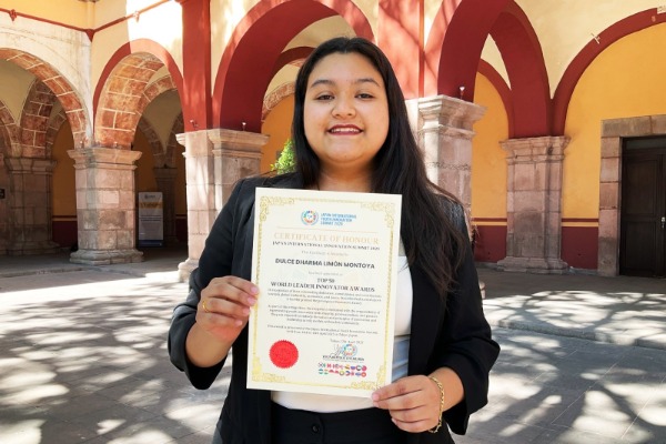 Dulce Dharma Limón Montoya, estudiante de primer año en la Facultad de Derecho Abogado Ponciano Arriaga Leija, de la Universidad Autónoma de San Luis Potosí (UASLP), fue galardonada con el "Young Innovator Award" en la Japan Peace and Innovation Summit 2025, celebrada en abril en ese país asiático.