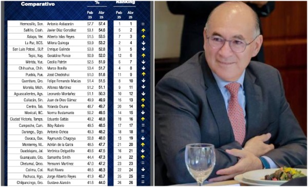 De los 31 alcaldes de capitales estatales evaluados, Galindo se encuentra en una posición media-baja, muy por debajo de figuras como Antonio Astiazarán de Hermosillo (57%) y Javier Díaz González de Saltillo (55%), quienes encabezan la lista de los mejor evaluados. En contraste, Miguel Varela de Zacatecas (36%) y José Luis Urióstegui de Cuernavaca (38%) figuran entre los peores calificados.