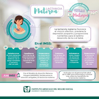 Finalmente, la especialista comentó que, se debe fomentar la lactancia materna en espacios libres, sin discriminación ni maltrato para amamantar. El IMSS reitera su compromiso con la promoción de la lactancia materna y ofrece apoyo y asesoramiento a las madres para asegurar una lactancia exitosa y saludable.