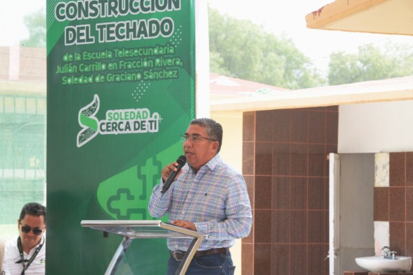 Con una inversión superior a los dos millones de pesos, el Alcalde de Soledad de Graciano Sánchez, Juan Manuel Navarro Muñiz encabezó el arranque de la construcción de un techado tipo II en la cancha deportiva de la escuela Telesecundaria "Julián Carrillo2, ubicada en la localidad Fracción Rivera, que beneficiará directamente a cientos de estudiantes, quienes ahora contarán con un espacio digno para realizar actividades físicas sin verse afectados por las inclemencias del tiempo.