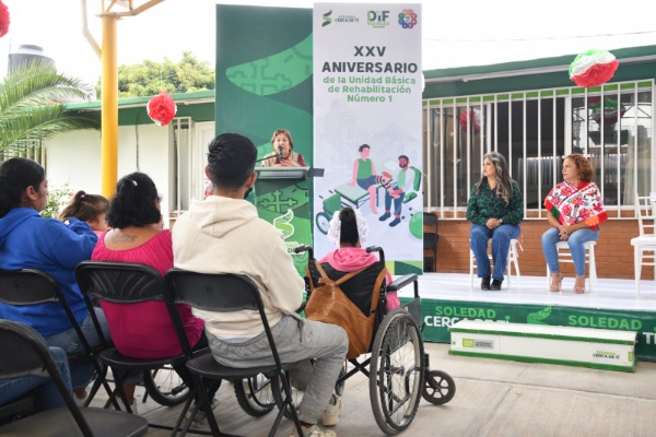 El Ayuntamiento de Soledad de Graciano Sánchez, a través del Sistema Municipal para el Desarrollo Integral de la Familia (DIF), conmemoró el XXV aniversario de la Unidad Básica de Rehabilitación (UBR) número uno, espacio que desde su apertura el 12 de septiembre del año 2000, ha brindado esperanza, atención y nuevas oportunidades a personas con discapacidad; durante la ceremonia, la presidenta del organismo, María del Pilar Cardona Reyna reconoció la confianza de las familias soledenses y reafirmó el compromiso de seguir trabajando de la mano con el Alcalde Juan Manuel Navarro Muñiz para consolidar más beneficios.