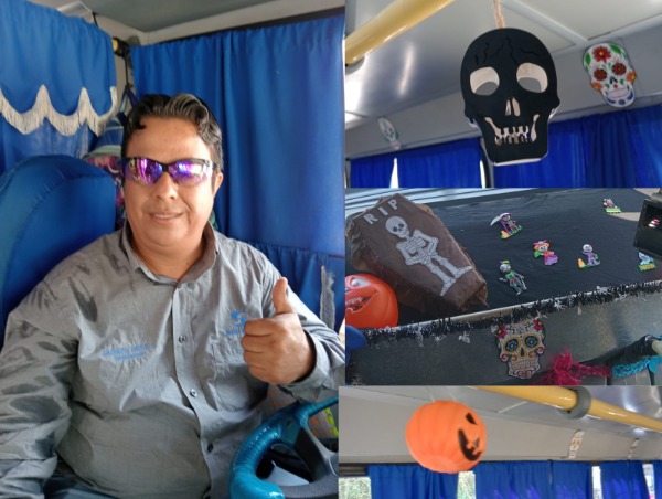 Con papel picado, calaveras, flores de cempasúchil y detalles alusivos a las celebraciones del Día de Muertos, Jacinto sorprendió nuevamente a sus pasajeros. "Esto es un regalo para mis usuarios, ellos siempre me apoyan y quiero darles una alegría, sobre todo a los niños. Me gusta ver cómo se emocionan cuando suben al camión y dicen: ¡Le quedó bien bonito!’", compartió Jacinto.