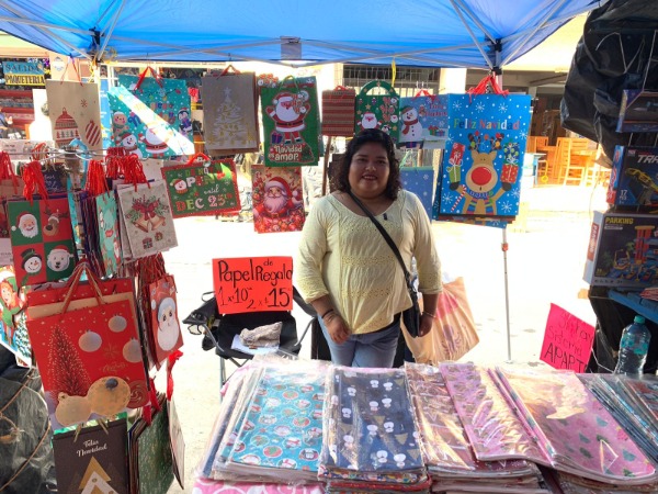 A unos días de la Navidad, comerciantes del centro de la ciudad confían en que la temporada decembrina impulse sus ingresos, luego de semanas con ventas bajas. Tal es el caso de Mercedes Villegas Saldaña, quien desde hace más de 10 años se dedica a la envoltura de regalos en la calle Porfirio Díaz, en la zona centro.