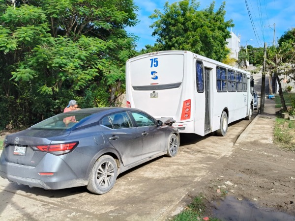Un percance vial se registró la mañana de este martes en la colonia Solidaridad, luego de que un automóvil particular se impactó contra un autobús del transporte urbano, en el cruce de las calles Cirila Vitela y José Pineda Sosa.