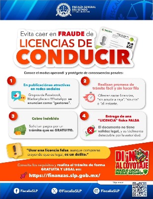 La FGESLP reafirma su compromiso con el combate al delito de fraude y la protección del patrimonio de la ciudadanía potosina, e invita a la población a mantenerse informada y a seguir estas recomendaciones para realizar transacciones seguras.