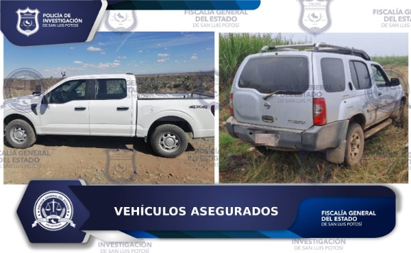 • En distintas acciones operativas, elementos de la Policía de Investigación (PDI) de la Fiscalía General del Estado de San Luis Potosí (FGESLP) lograron el aseguramiento de dos vehículos por diversas irregularidades, en Salinas de Hidalgo y El Naranjo.