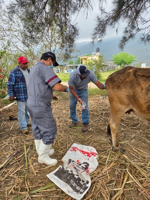 Comentó el funcionario que se tiene apoyo por parte del Servicio Nacional de Sanidad, Inocuidad y Calidad Agroalimentaria (SENASICA), con brigadas de médicos veterinarios que en la semana anterior hicieron trabajos de barrido en ejido Papagayos y Nuevo Centro Poblacional Ganadero Papagayos, para aplicación de un desinfectante para el ganado, así como también labores de desparasitación, pues en esas zonas los casos confirmados iban en aumento.