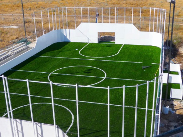 Se trata de un campo de Futbol 5, que es una cancha rectangular de juego con material sintético tipo césped, que estará ubicada a un costado de la carretera estatal, justamente a un lado del Rastro Municipal.