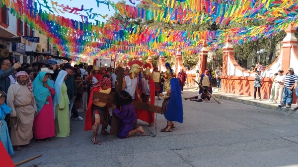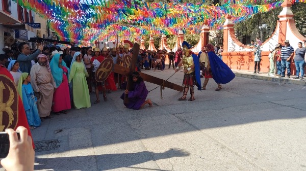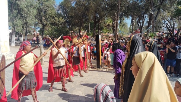 La actividad comenzó desde el atrio de la Parroquia de la Virgen de la Purísima Concepción, para proseguir sobre la avenida General Ignacio Zaragoza y así llegar al parque del Barrio Villa de San José, sitio donde se lleva a cabo la crucifixión de Jesús.