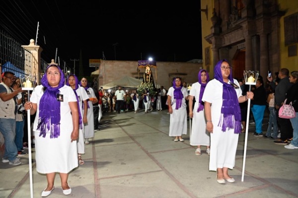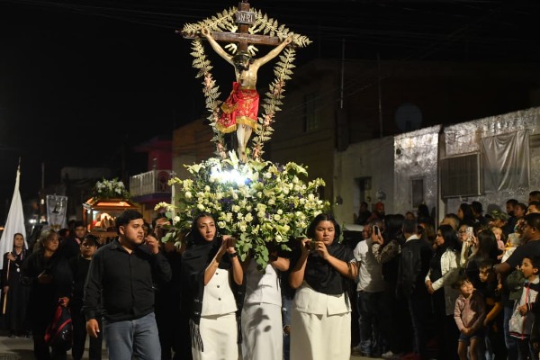 Una de las cofradías, integrada por mujeres, portaron como costaleras o cargadoras, una de las imágenes de Cristo, donde las y los visitantes atestiguaron su devoción y el simbolismo de su fe en su marcha silenciosa que recordó la pasión y muerte de Jesús.